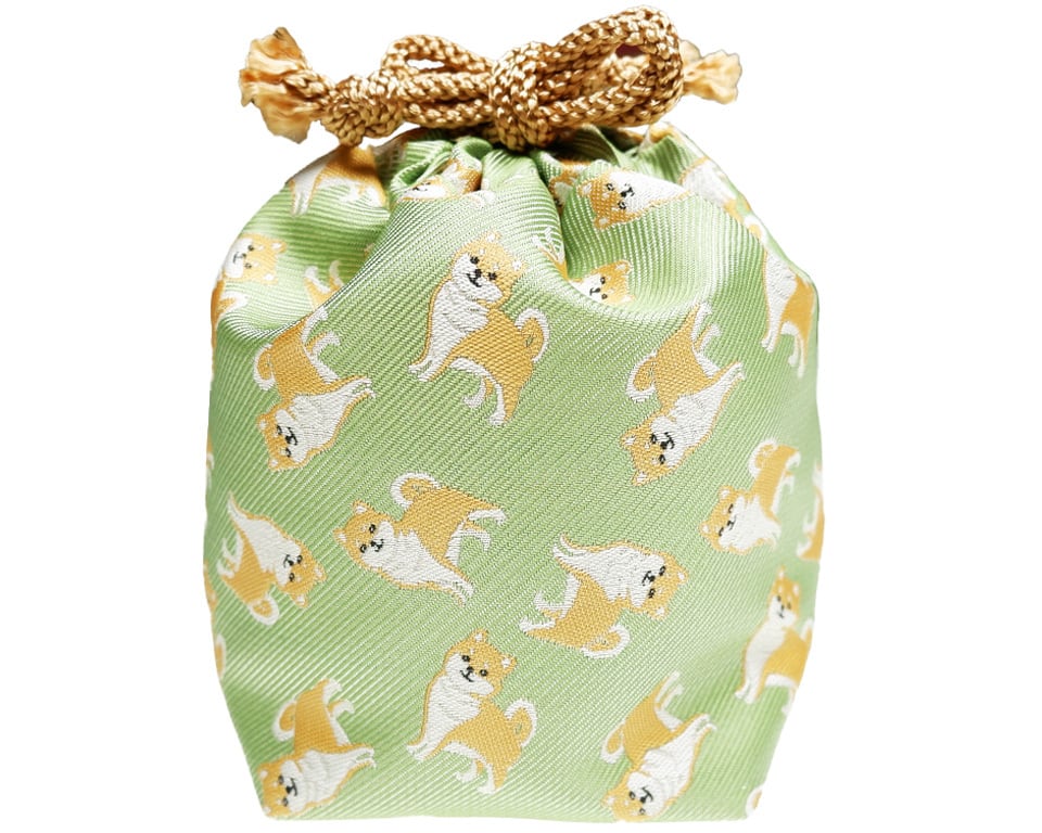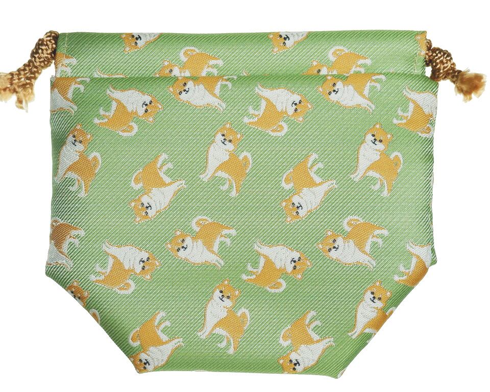 あめちゃん巾着ポーチ 柴犬 黄緑